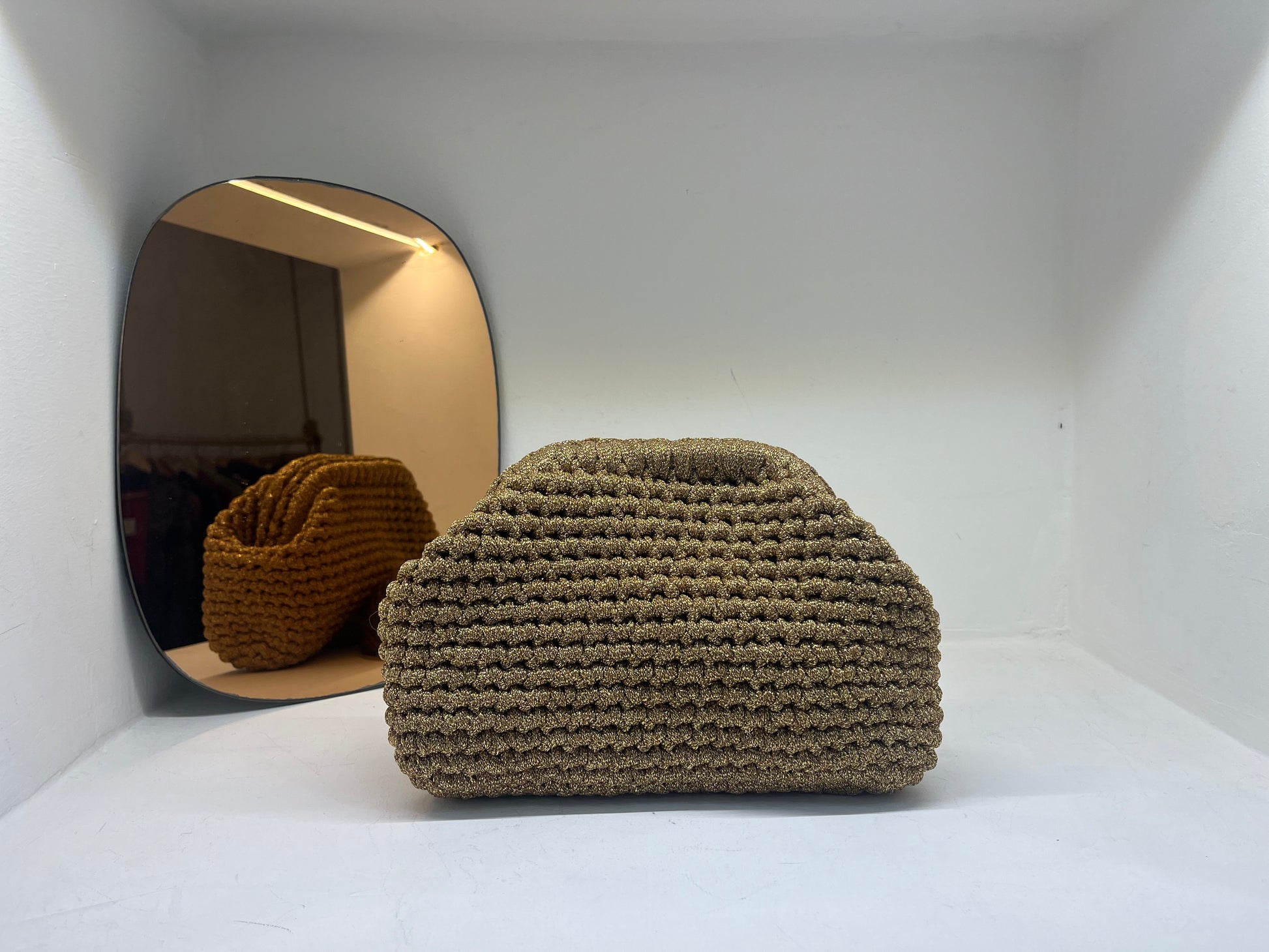 Creazioni artigianali firmate Igea d'Angelo, le Borse Pasticcino incarnano l'eccellenza della lavorazione manuale italiana. Ogni pezzo è realizzato con meticolosa attenzione ai dettagli, impreziosito da finiture metallizzate che catturano la luce con eleganza sofisticata. Disponibili in una gamma di dimensioni, si adattano perfettamente a ogni occasione, dal quotidiano agli eventi speciali. Un accessorio che testimonia il valore della vera artigianalità.